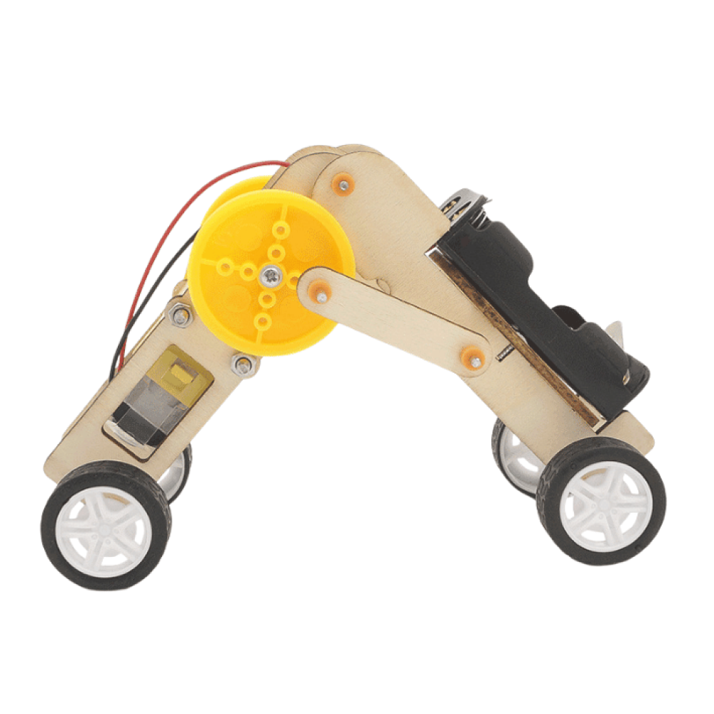 1_ المواد الأولية اللازمة لتجميع نموذج الروبوت (مجسم النموذج، أسلاك، محرك، وتروس)