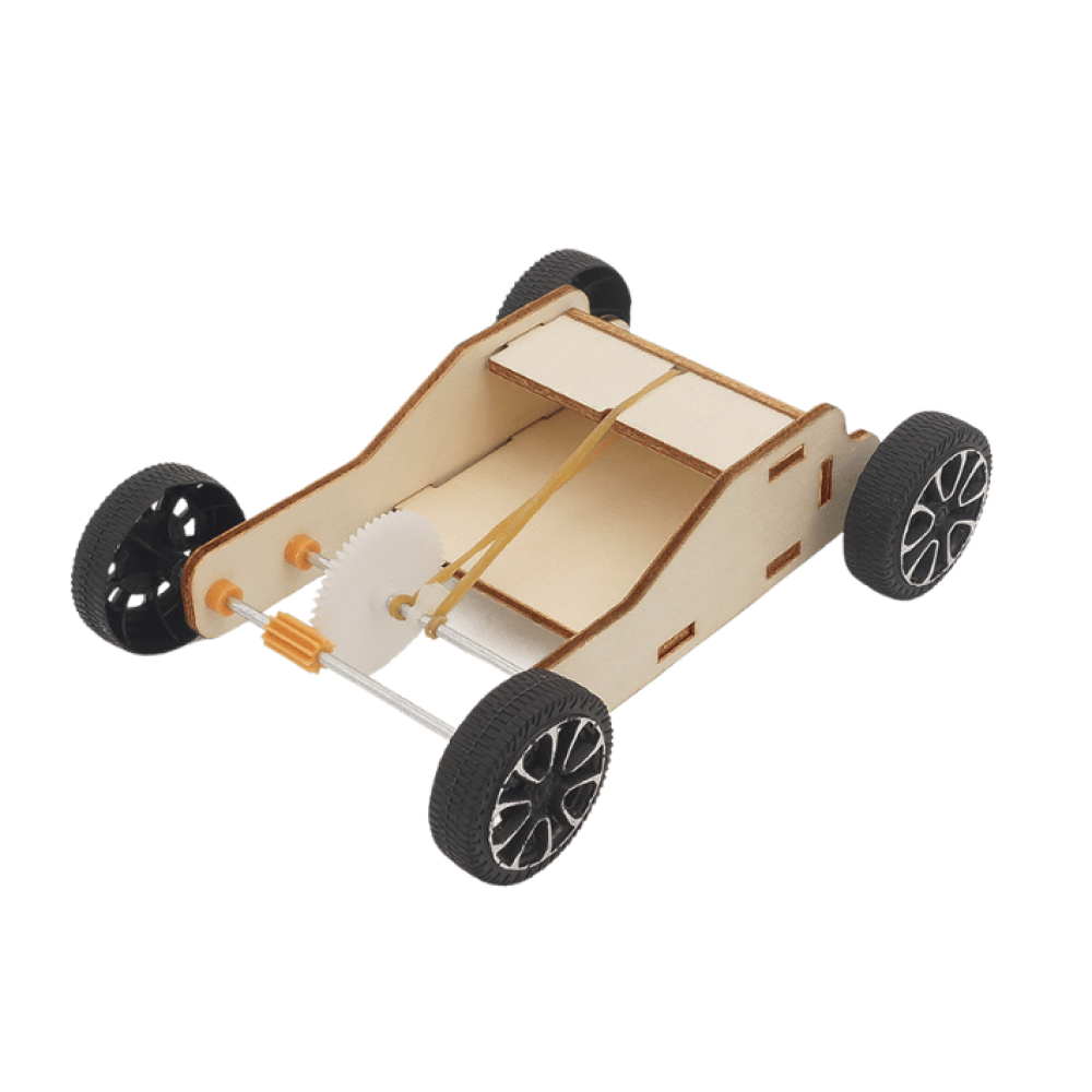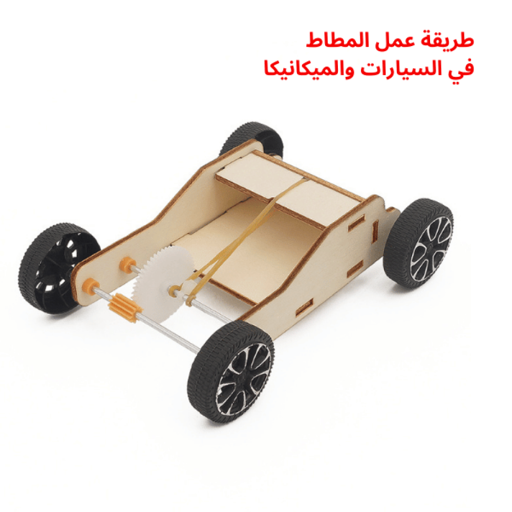 هذه التجربة هي تركيب نموذج سيارة تعمل بالطاقة المخزنة في الشريط المطاطي.