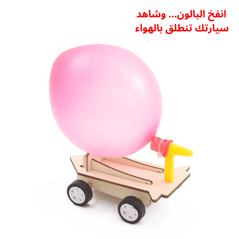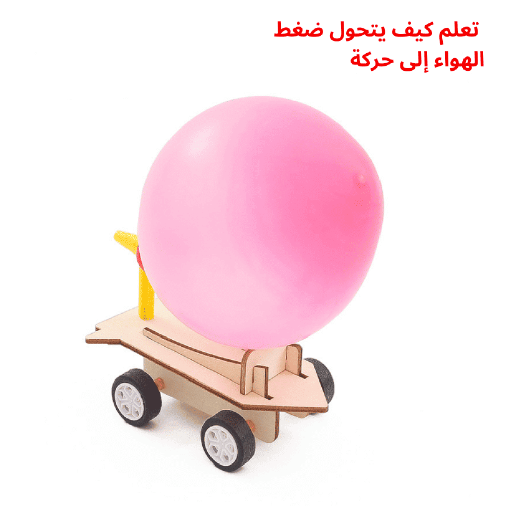 عند إتمام عملية التركيب تتحرك السيارة باستخدام الهواء المنطلق من البالون لتوضيح فكرة الدفع العكسي بشكل عملي، مما يجعلها وسيلة مثالية لتعلم الأطفال أساسيات الطاقة الحركية والهواء المضغوط ضمن أنشطة وتجارب STEM التعليمية.