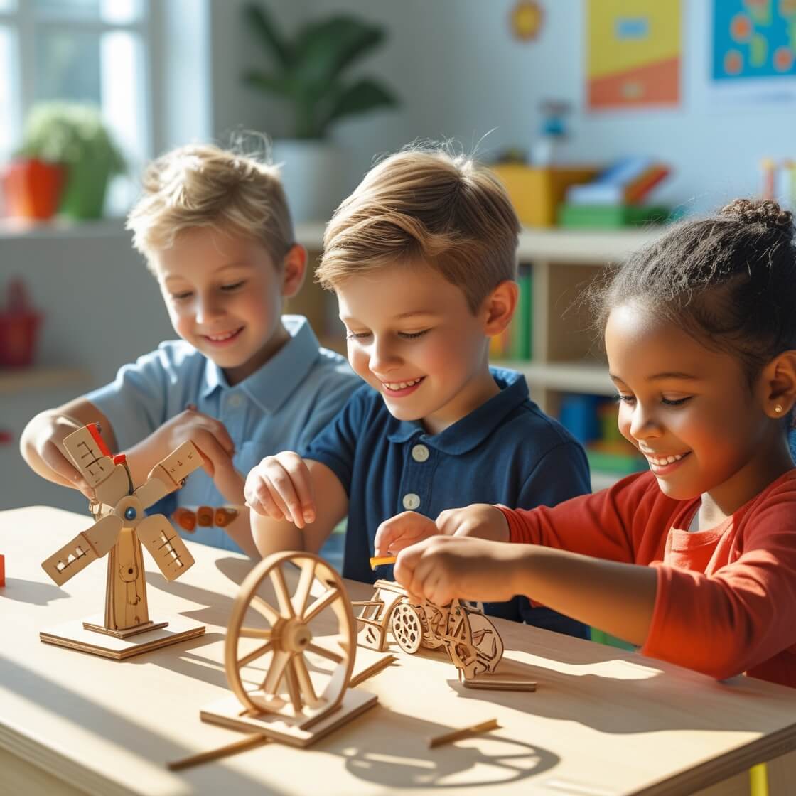 مثل بناء سيارة الجاذبية أو دوامة الفنون، وهي ألعاب تعليمية تدمج الحركة مع المفاهيم.