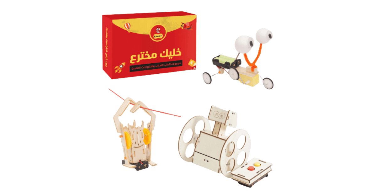 - استخدم أطقم STEM التعليمية الجاهزة من متجر خليك مخترع والتي تحتوي على كتيبات مبسطة باللغة العربية.